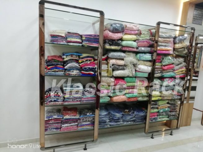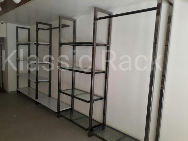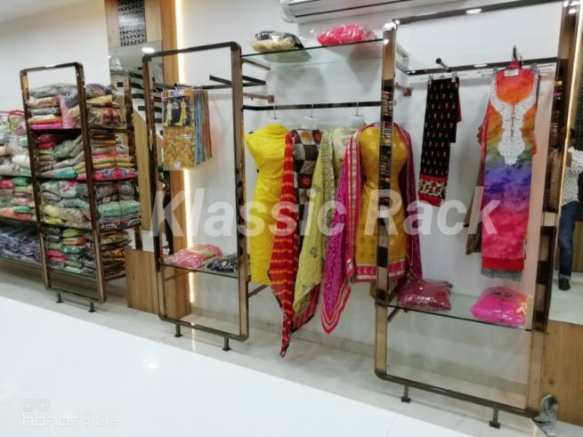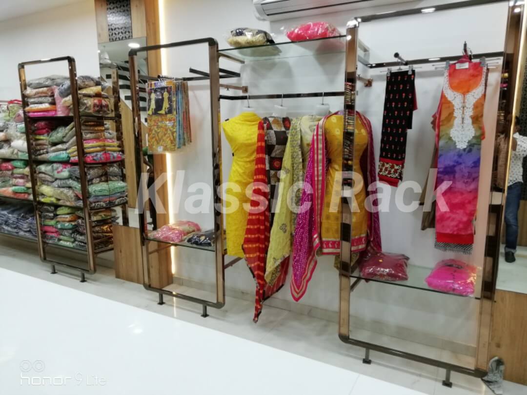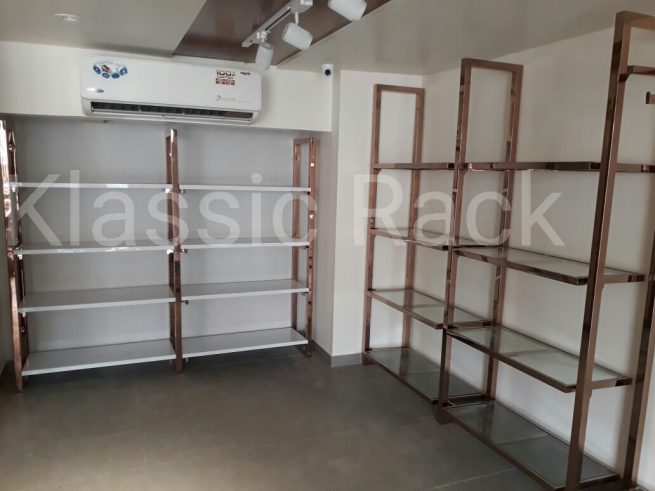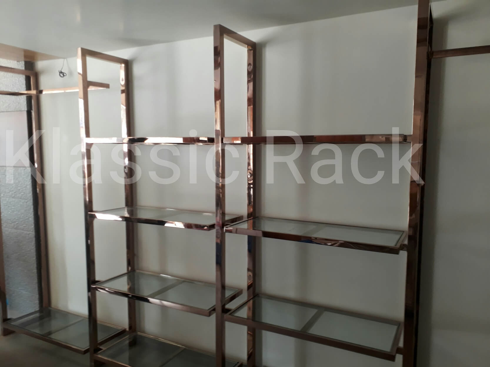 With their unique color scheme & design,these racks can easily add up to the store`s attractiveness.Copper polished garment racks are made from pure S.S (Stainless Steel) with various provision for shelving & hanging.